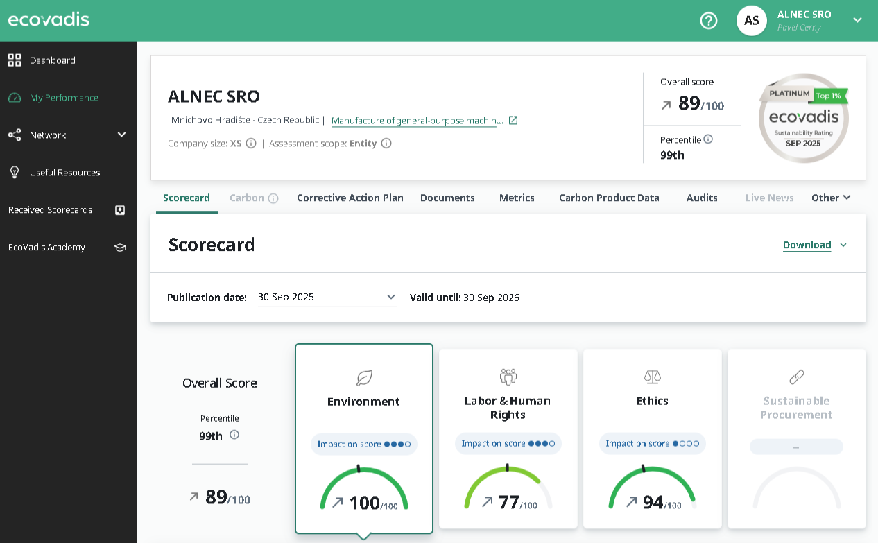 Také každý rok podléháme hodnocení dle metodiky Dun & Bradstreet, aby byla firma dlouhodobě stabilní a důvěryhodná pro naše partnery.